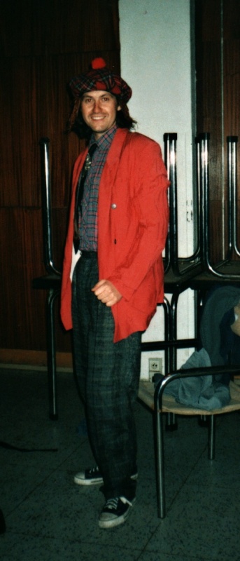 V předvečer státnic na VŠ. Naštěstí mi kamarádi zapůjčili oblek, tak jsem druhý den nevypadal tak komicky.